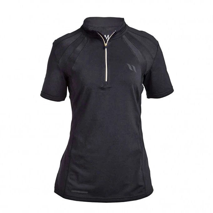 Olivia Womens Tee is slimly tailored with Iontex infrared technology. Elegantly styled half zip sport top with figure flattering fit infused with infrared energy is perfect for every occasion. Features mesh details for added ventilation, tone on tone print, and a half-zip at the front for comfort. Great for performance lifestyle the Iontex technology is lightweight, breathable and has thermal regulation properties. Great for riding in all weather conditions by helping you stay dry and it is odor-controlling effects.