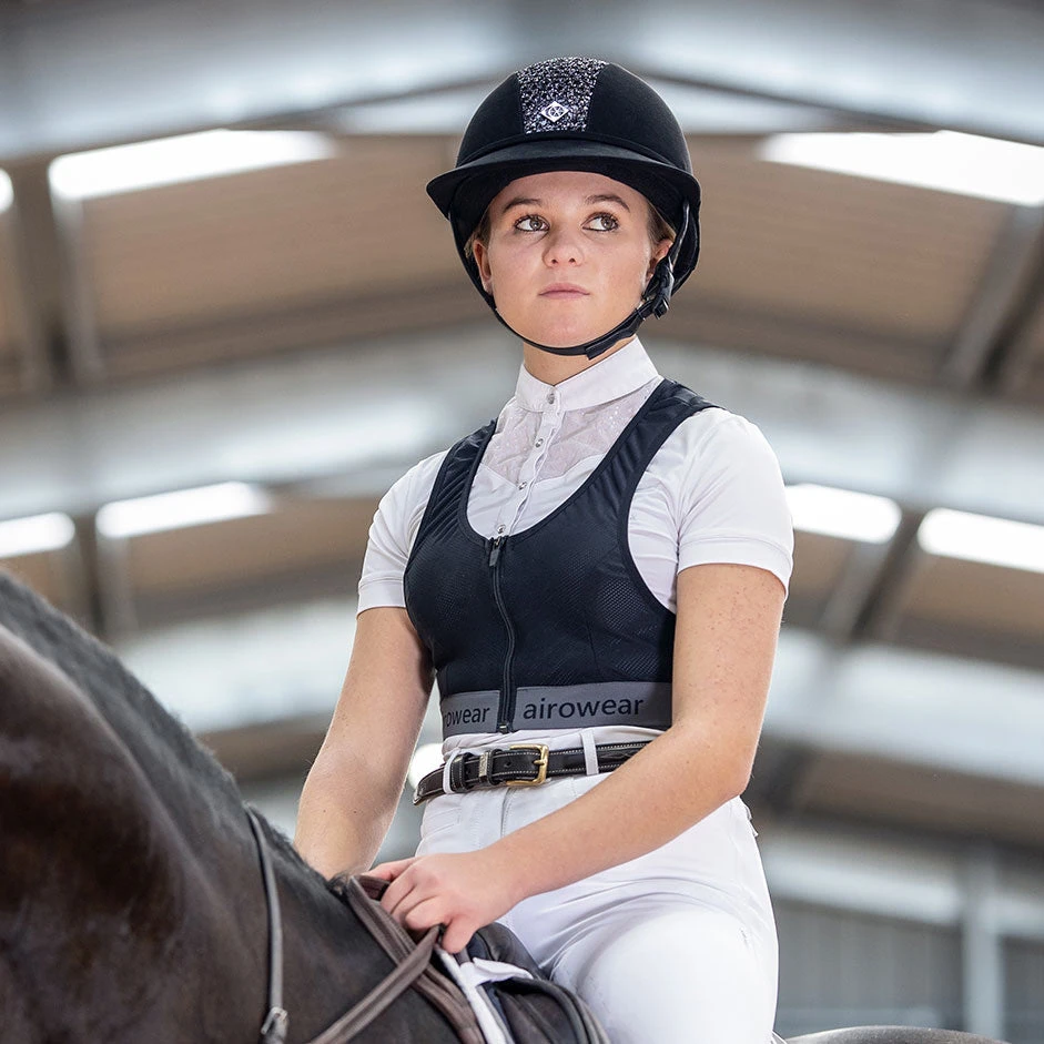 Airowear Shadow Mid-Layer Back Protector offers limitless movement over jumps whilst protecting against impacts from a fall. Hidden back protection fits subtly under show jackets to offer peace of mind and core back protection. The fully flexible front does not restrict movement and breathable material for a comfortable fit while riding. The Airowear Shadow is a lightweight alternative to a full body protective vest.