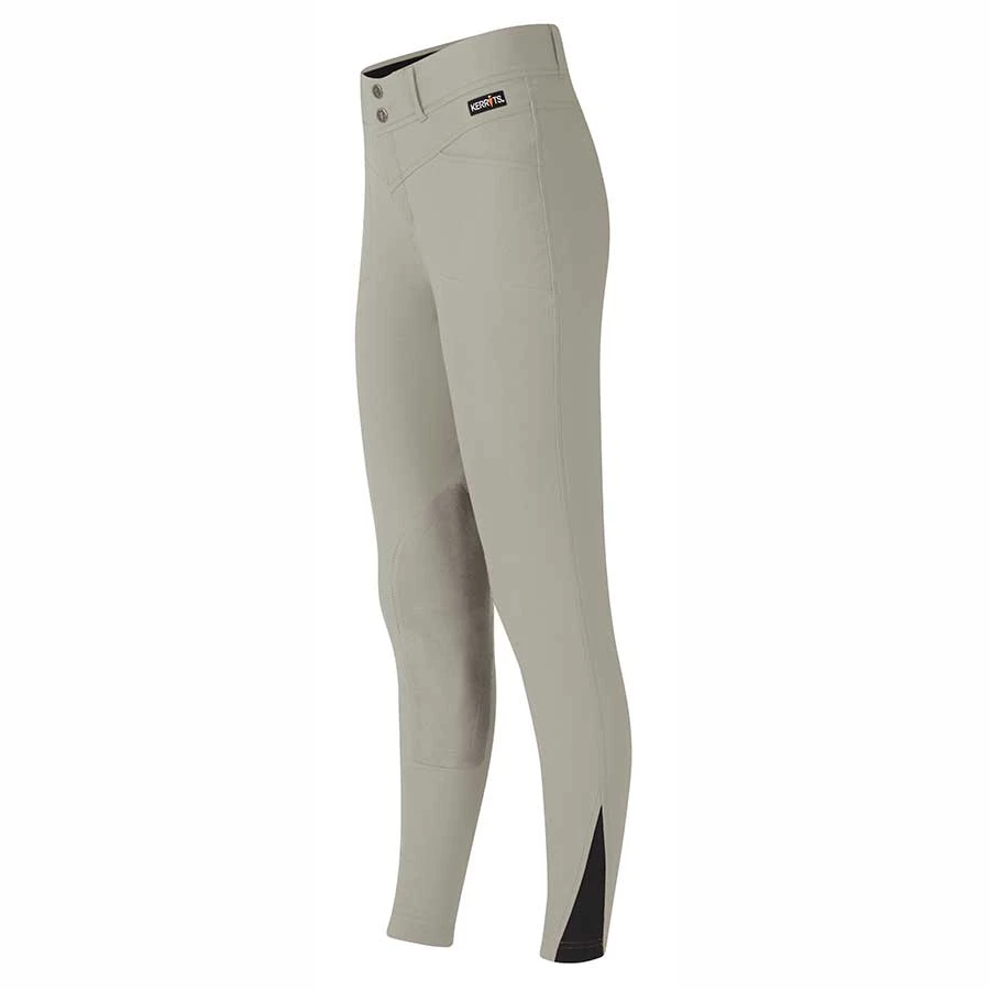 The Kerrits Crossover II Kids Knee Patch Breech are the same adored breeches made for women, now for kids! These comfortable breeches keep a tailored, polished look for the professional-in-training while holding up for kids who get to ride and show a lot. Durable Dynamic Extreme fabric stands up to barn life, while keeping up with pony-crazy life too! Front snap fly and belt loops create a traditional equestrian look, for a blue-ribbon presentation during clinics, lessons, and shows.